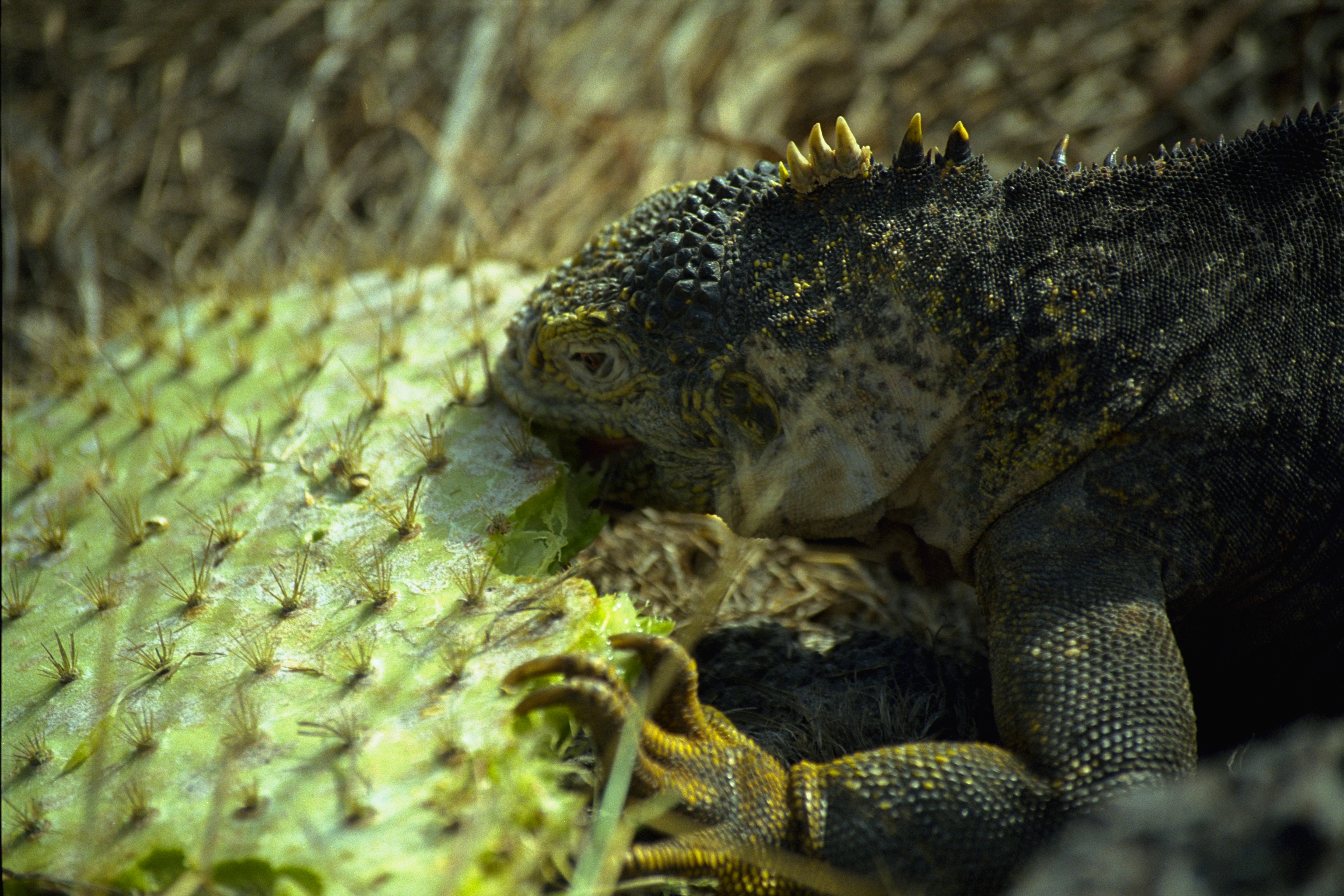 A land iguana eating.